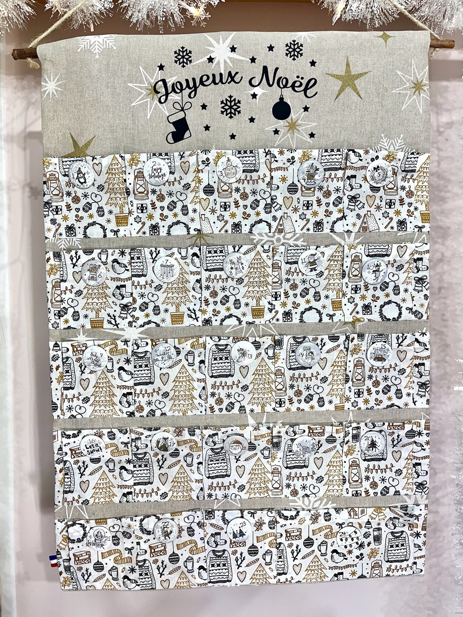 Calendrier de l'Avent, accessoires cheveux, noeuds papillon, pochons cadeaux, lots de lingettes, pochettes imperméables ...