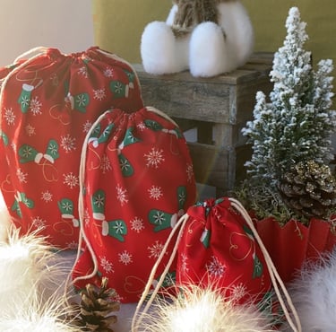 Calendrier de l'Avent, accessoires cheveux, noeuds papillon, pochons cadeaux, lots de lingettes, pochettes imperméables ...